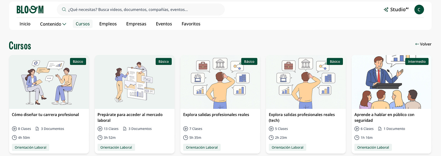La novedad que os traemos es el apartado de CURSOS, pensado para que no os perdáis entre tanto contenido de Bloom, donde hemos organizamos varios cursos modo “lista de reproducción” con un objetivos concretos: